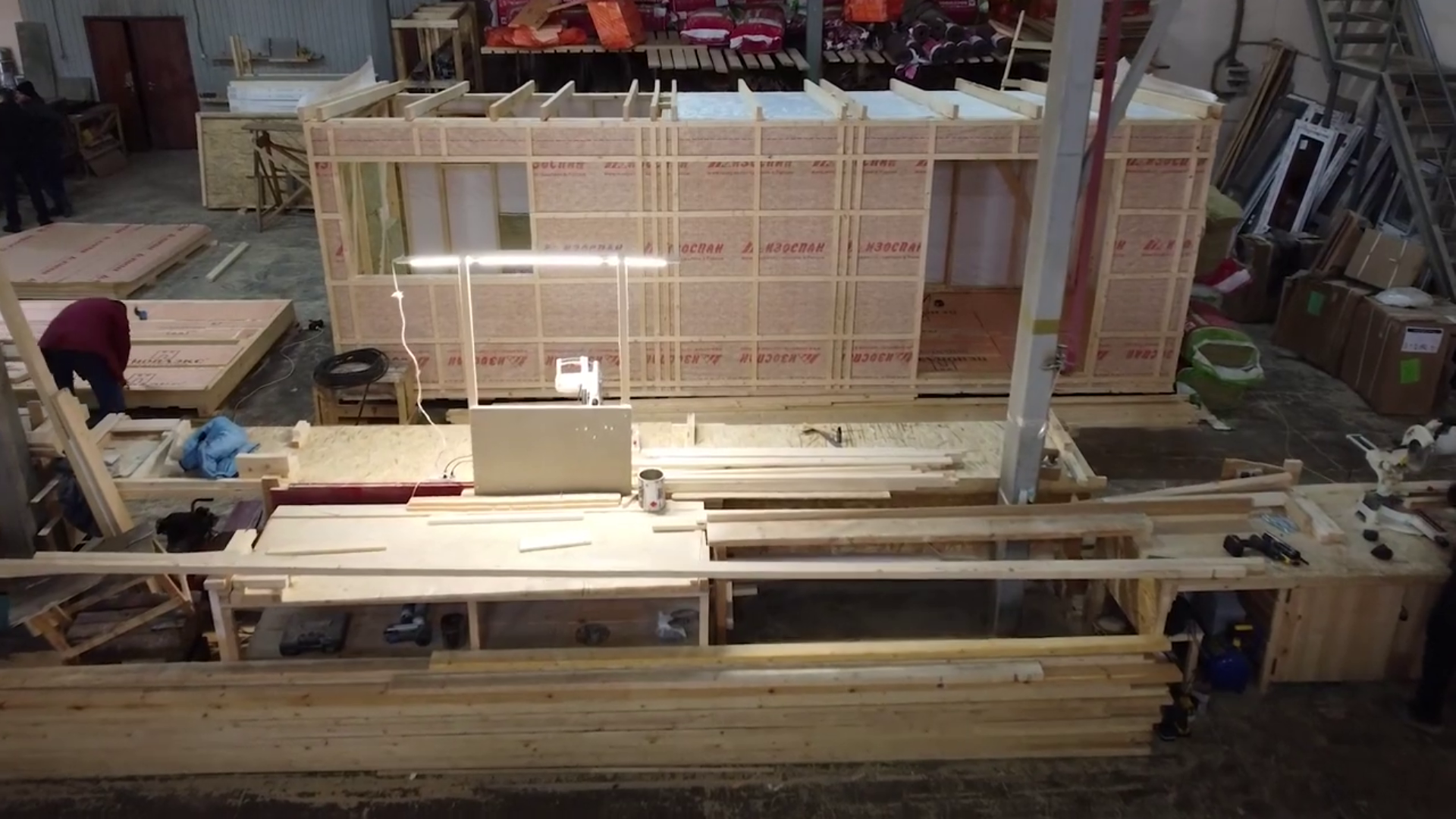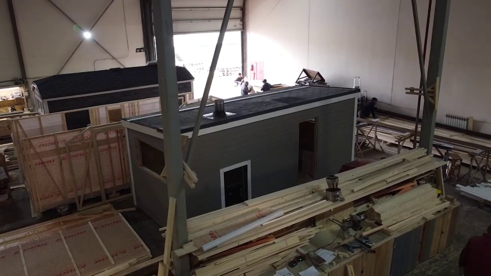 За 1 мин.55 сек. посмотрите полностью все этапы сборки бани.