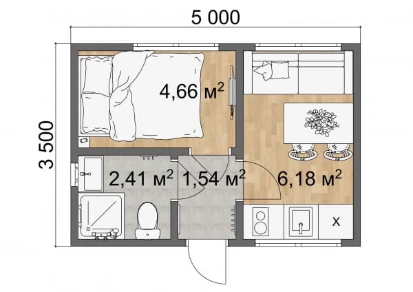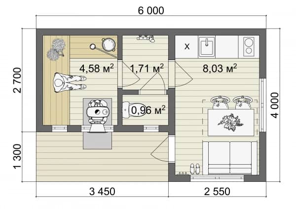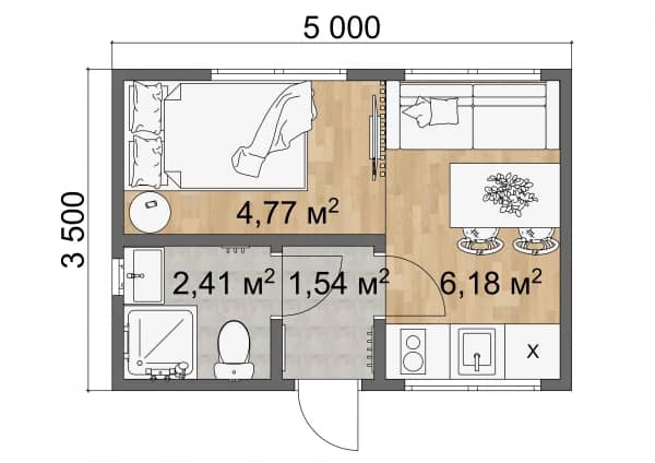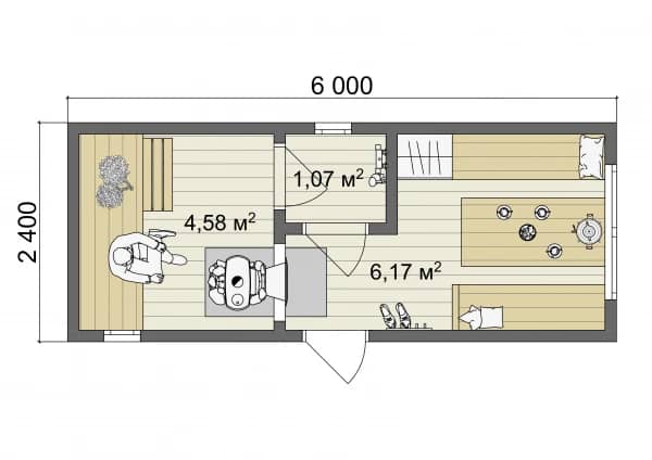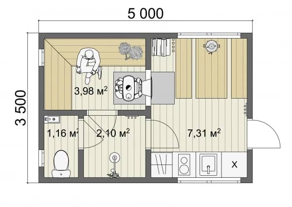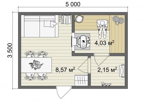 Зона отдыха легко превращается в доп. спальное место для гостей или хозяев.